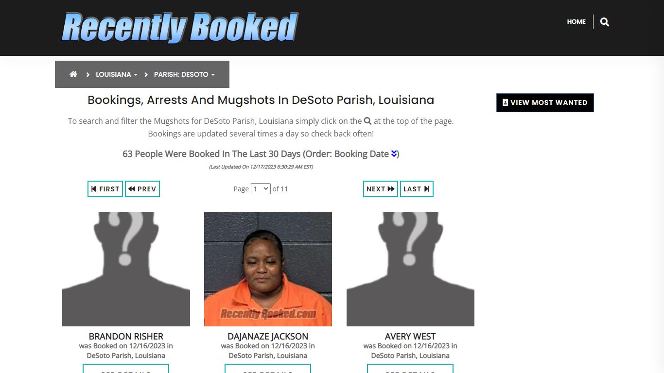 Bookings, Arrests and Mugshots in DeSoto Parish, Louisiana